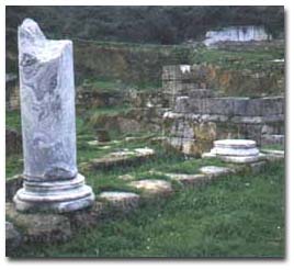 | It was at that time that Eshmounazar II, the son of Tabnit I, acceded to the throne. Inscriptions found on the sarcophagus of Eshmounazar (discovered in 1858 and now in the Louvre Museum) relate that he and his mother Amashtarte (servant of Astarte) built temples to the god of Sidon. One of these was the temple of the Holy God Eshmoun at the source of Yidlal near the cistern. | Roman colonade |